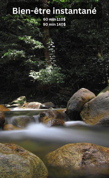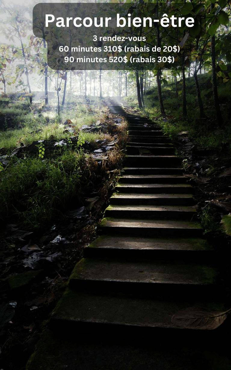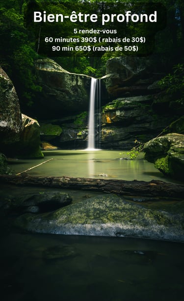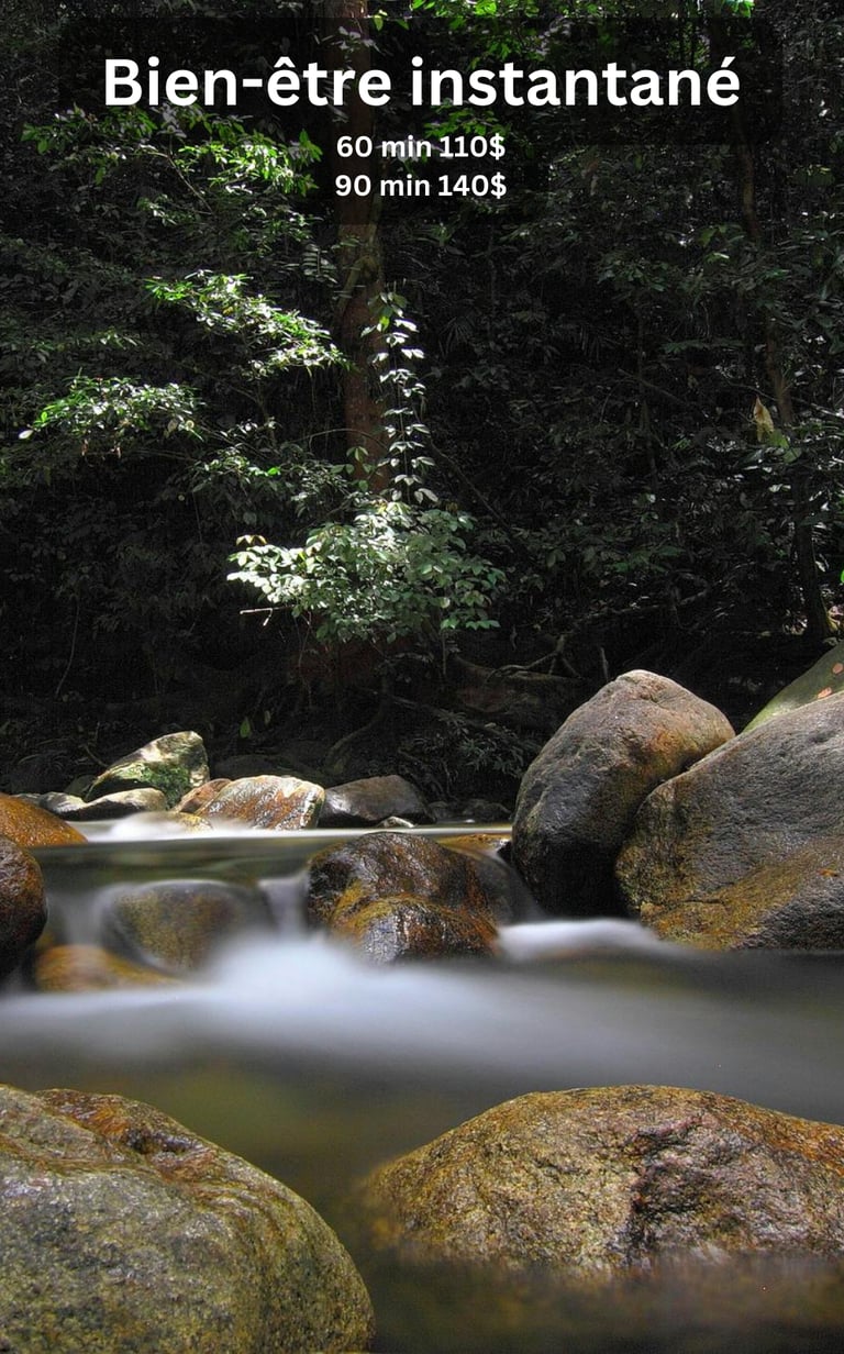 Habituellement dès la première séance vous ressentirez les effets du soin, avec un sens de relaxation et de détente. C'est un point de départ idéal pour débuter le traitement vers le résultat souhaité. Pour vous assurer un traitement complet, découvrez nos autres forfaits proposant plusieurs visites.