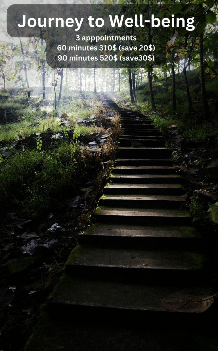 3 sessions is a minimum number of visits that will allow you to delve deeper into a specific goal, unlike Package #1, which is more of an introduction to all the benefits that reflexology tailored to your specific needs can provide.